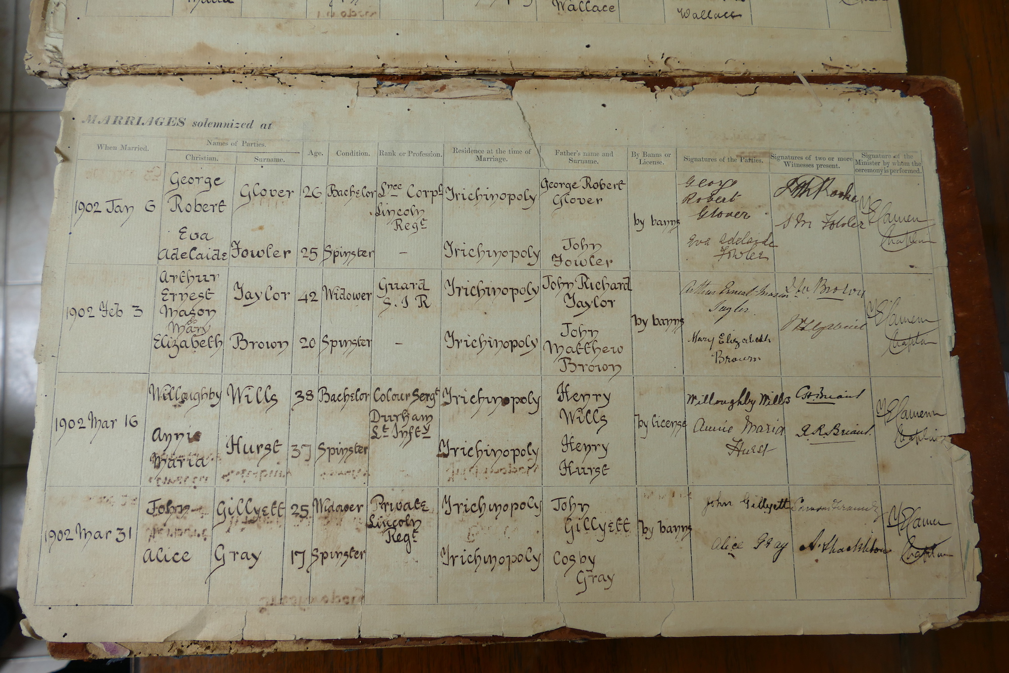 St Johns Church Trichinopoly Madras - Marriage Registers