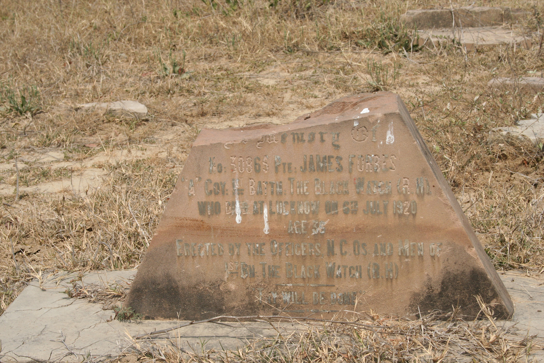 Image title: Forbes, Private James, gravestone at Bandariabagh