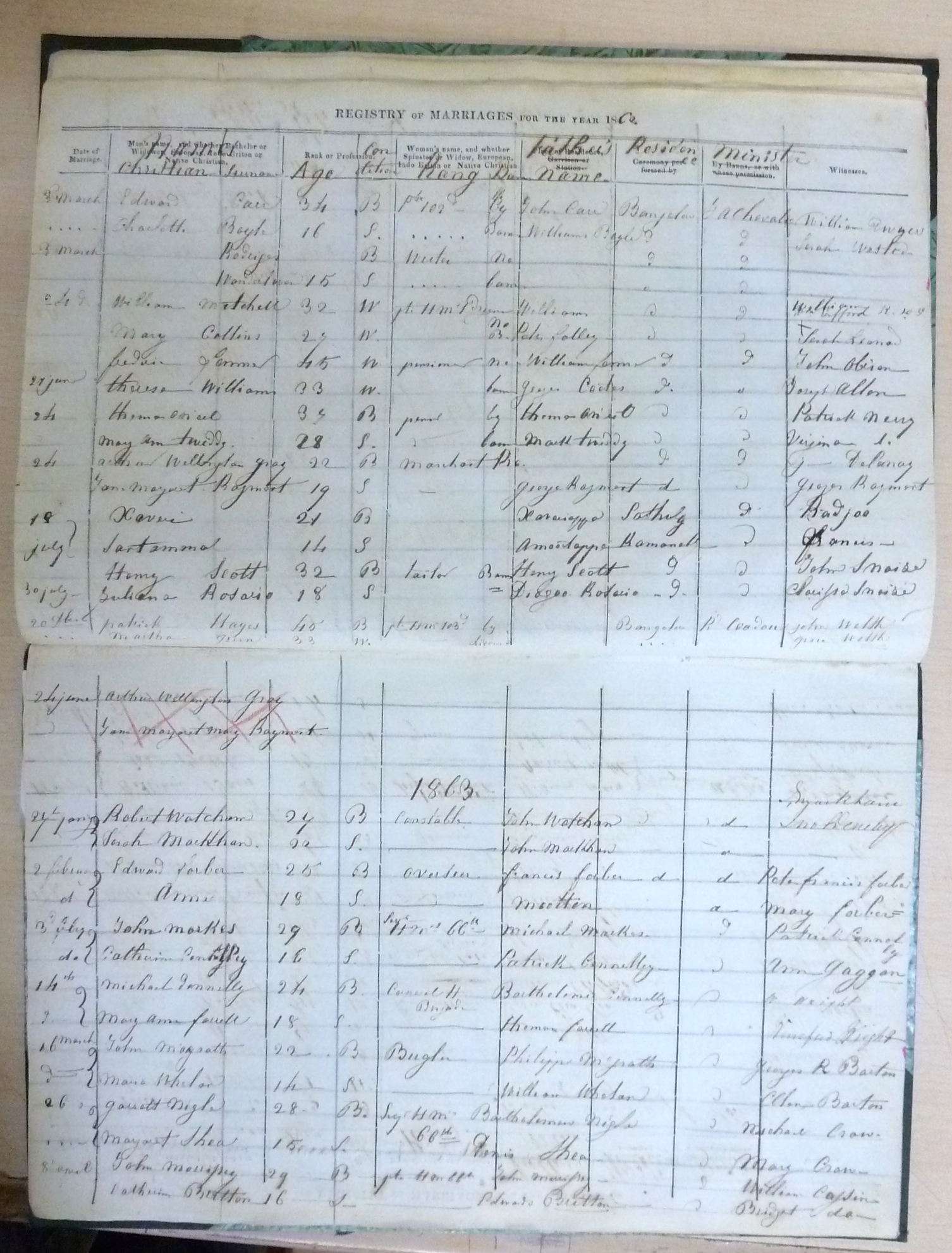 St Patricks RC Bangalore Madras - Marriage Registers