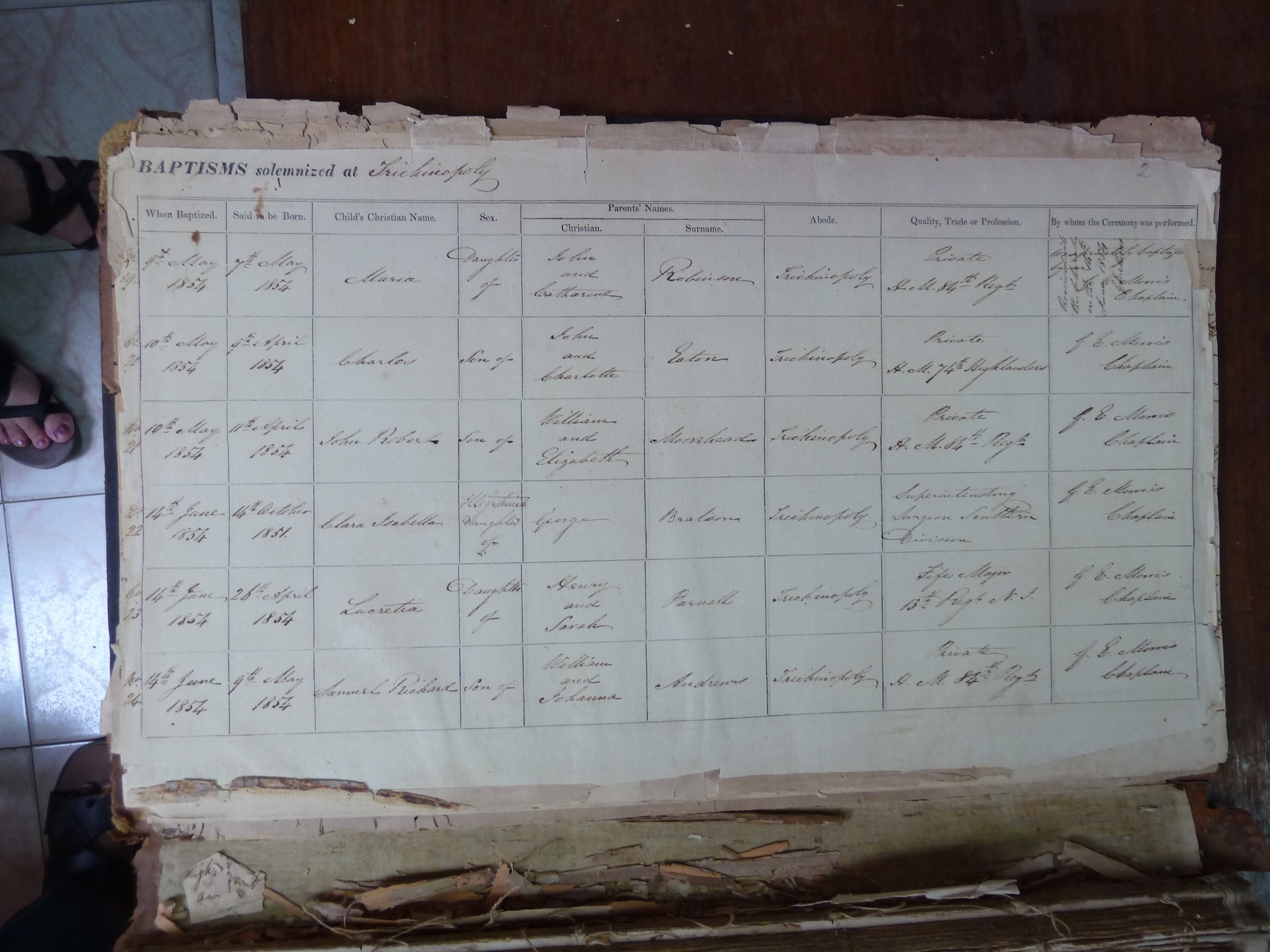 St Johns Church Trichinopoly - Baptismal Registers