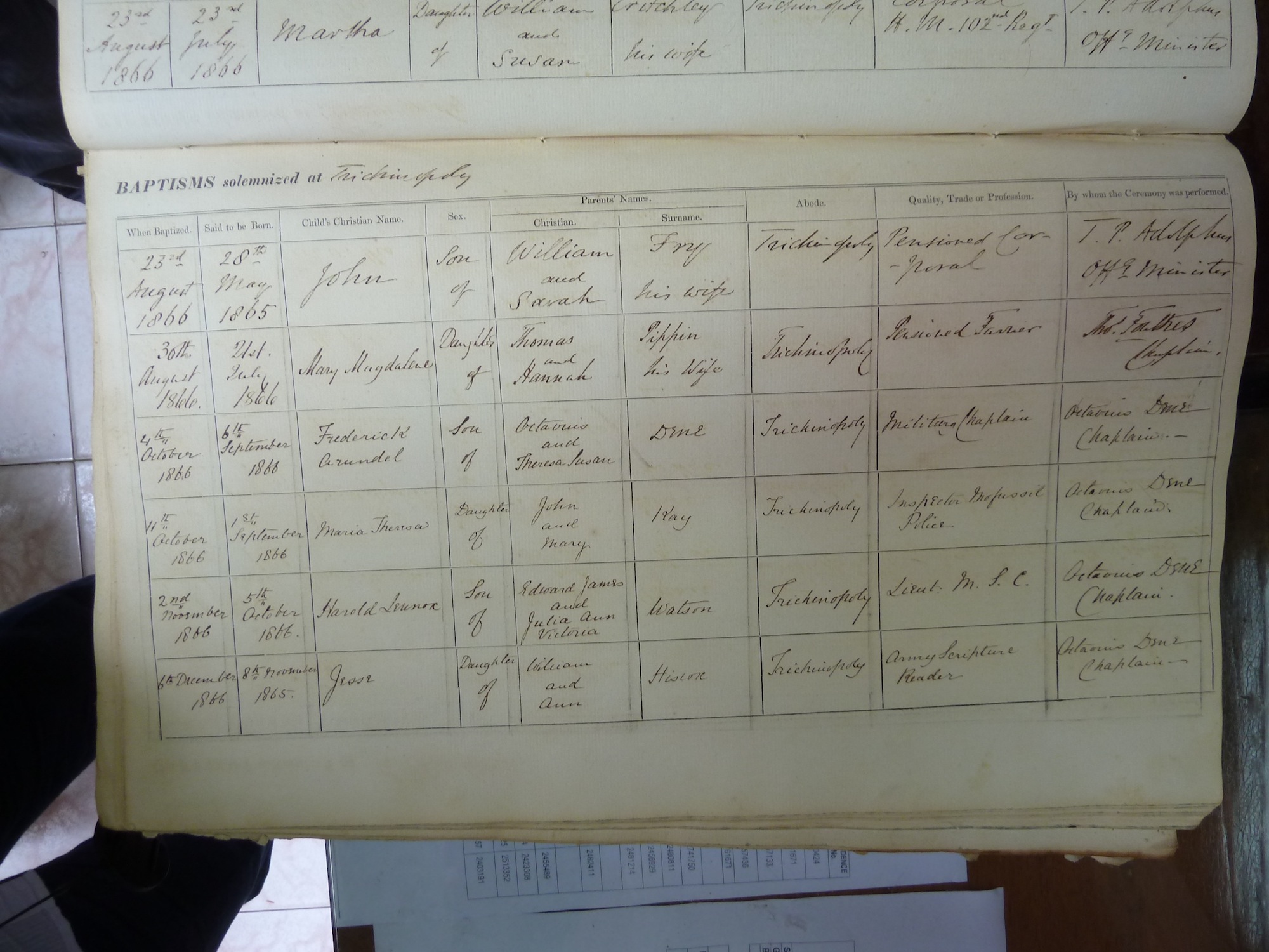 Image title: St Johns Trichinopoly Baptismal Register 1851-1909 - 106 File size: 565,669 bytes
