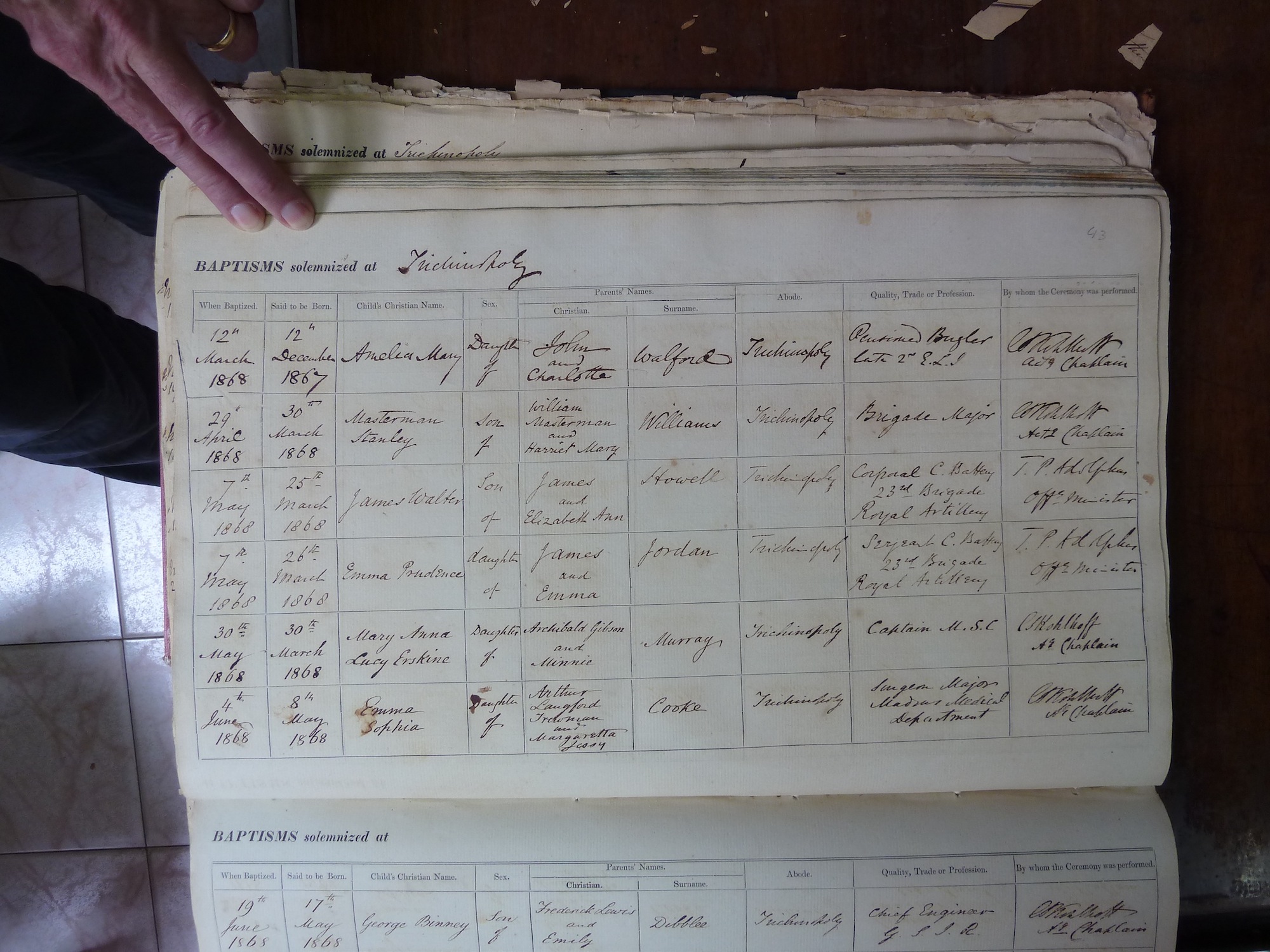 St Johns Church Trichinopoly - Baptismal Registers