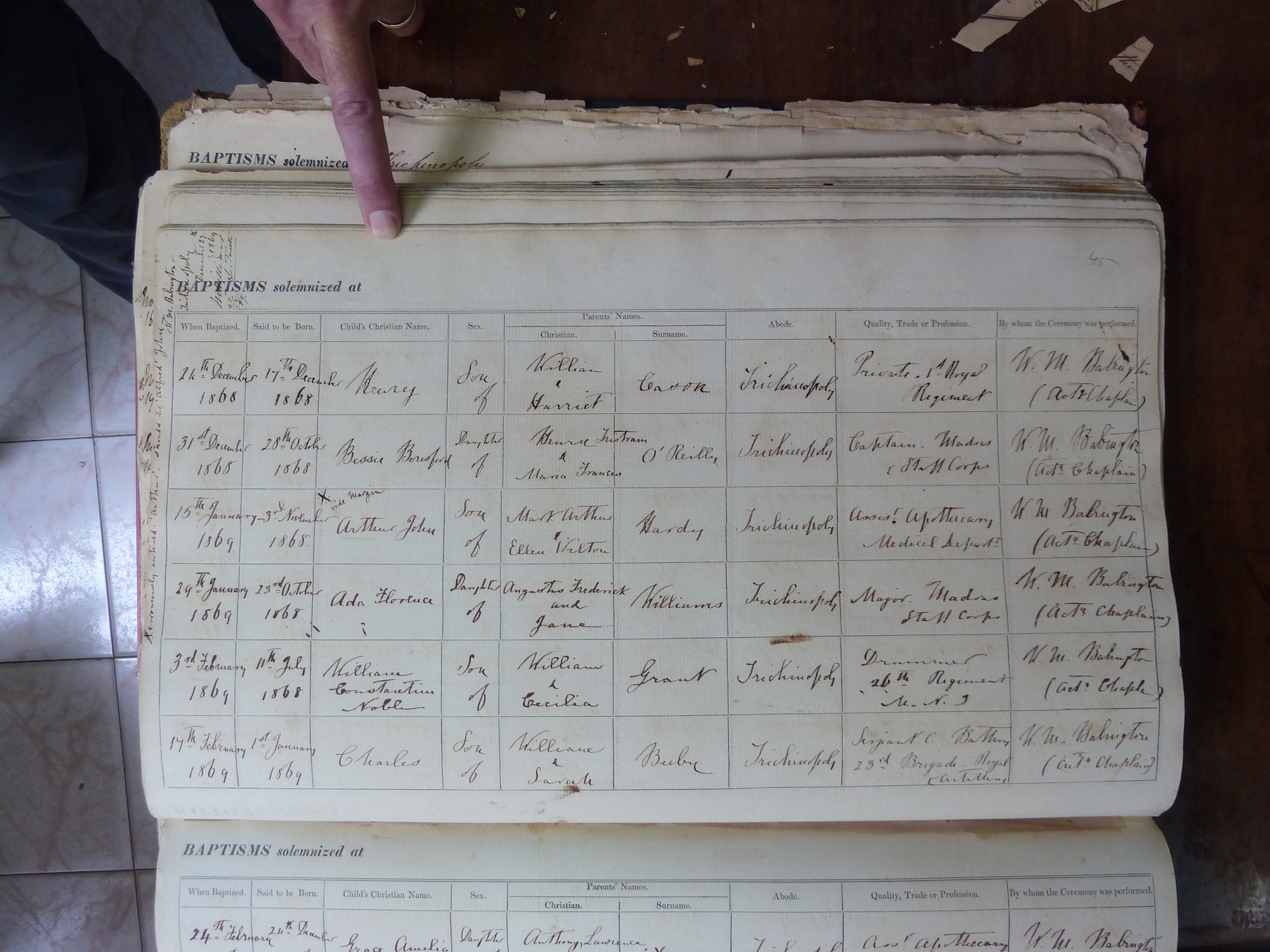 St Johns Church Trichinopoly - Baptismal Registers