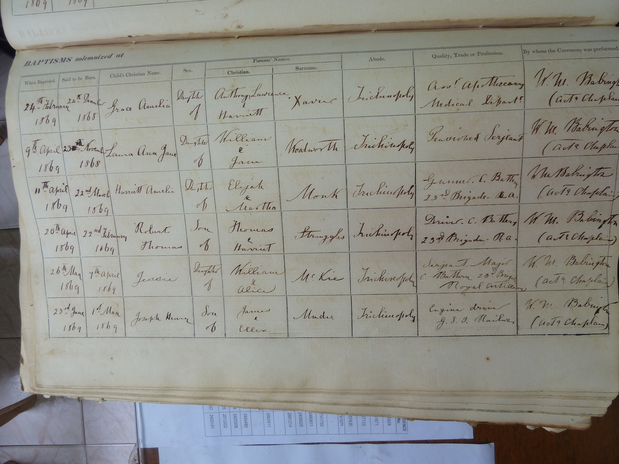 St Johns Church Trichinopoly - Baptismal Registers