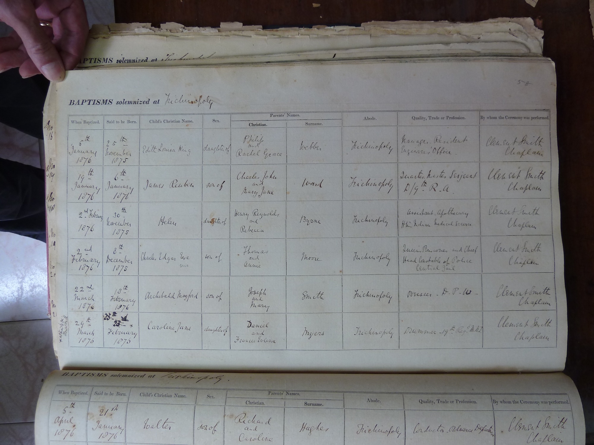 St Johns Church Trichinopoly - Baptismal Registers