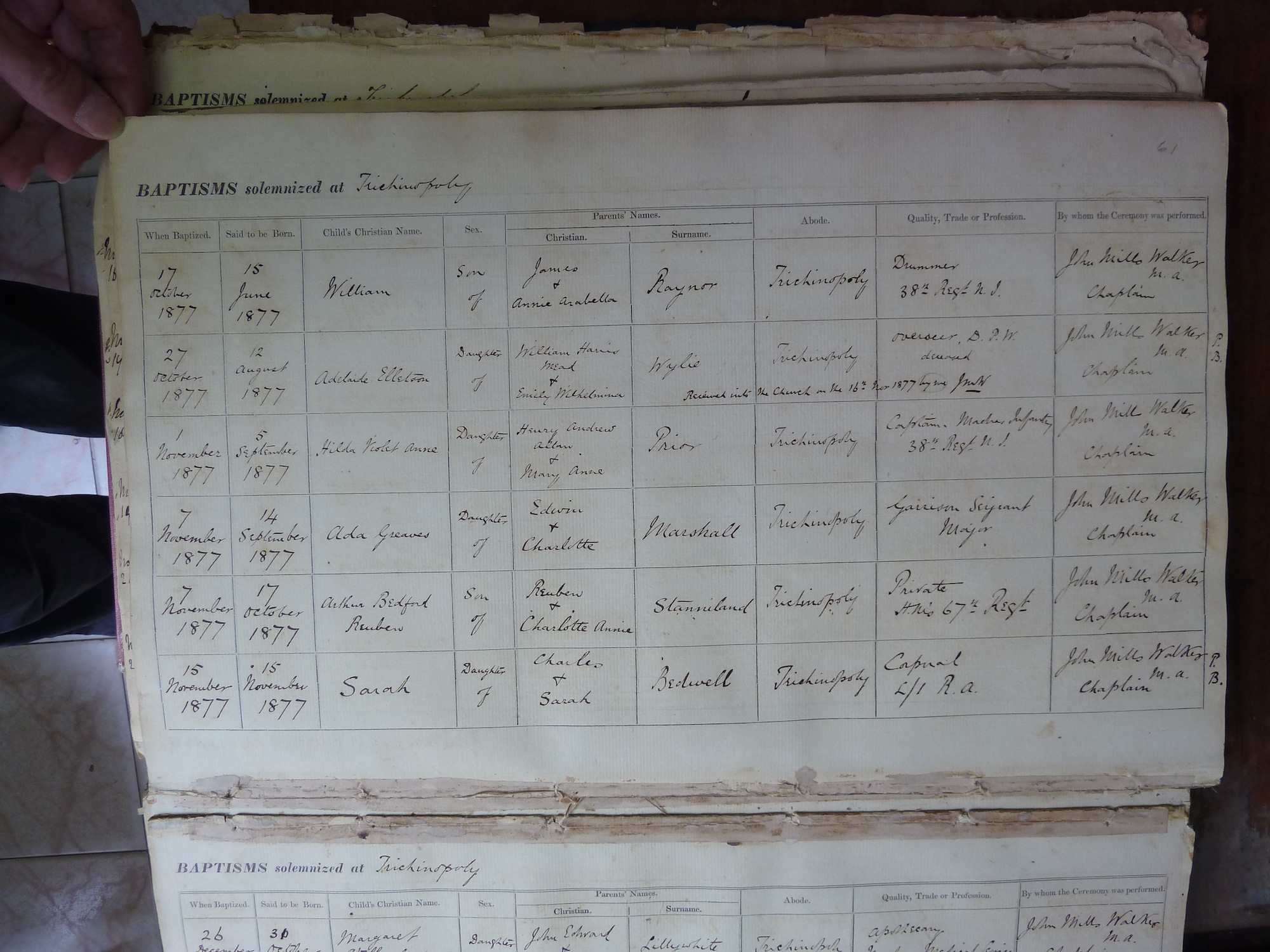 St Johns Church Trichinopoly - Baptismal Registers