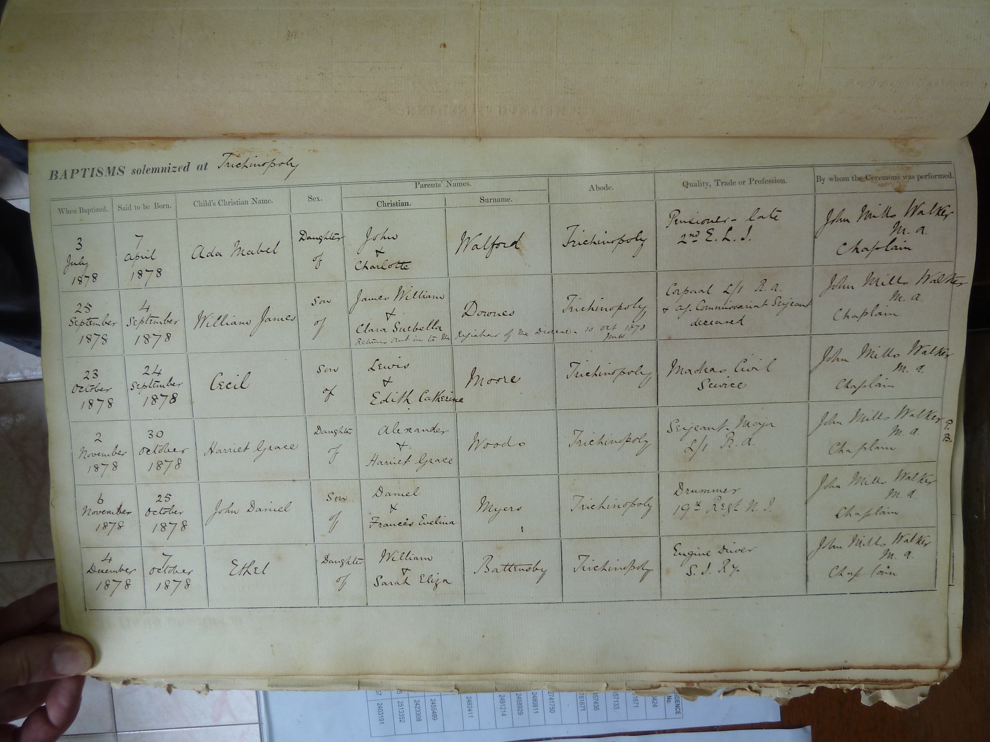 St Johns Church Trichinopoly - Baptismal Registers