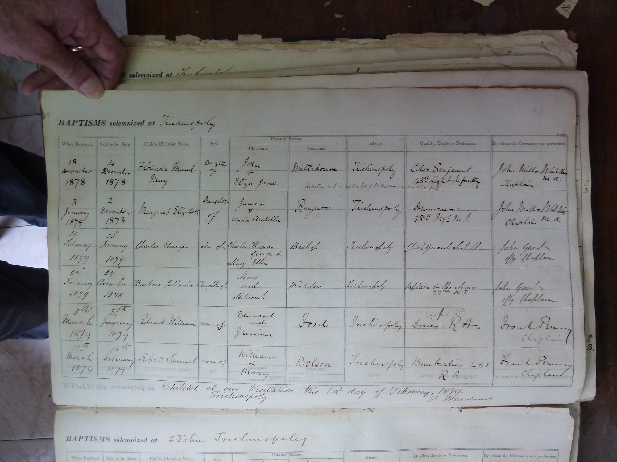 St Johns Church Trichinopoly - Baptismal Registers