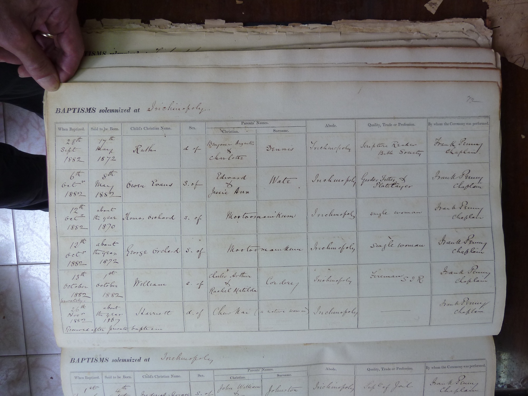 Image title: St Johns Trichinopoly Baptismal Register 1851-1909 - 168