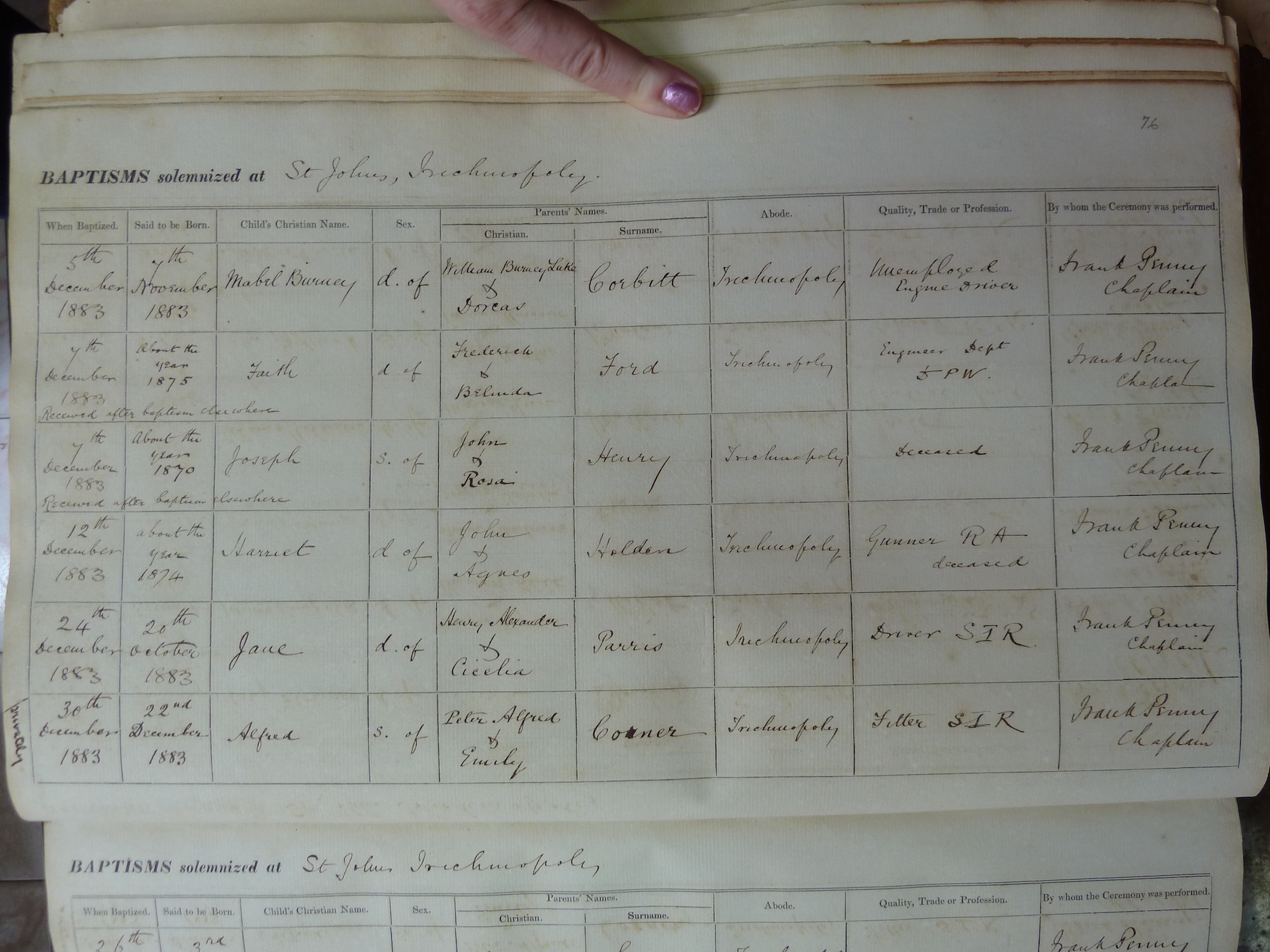 Image title: St Johns Trichinopoly Baptismal Register 1851-1909 - 176 File size: 620,868 bytes