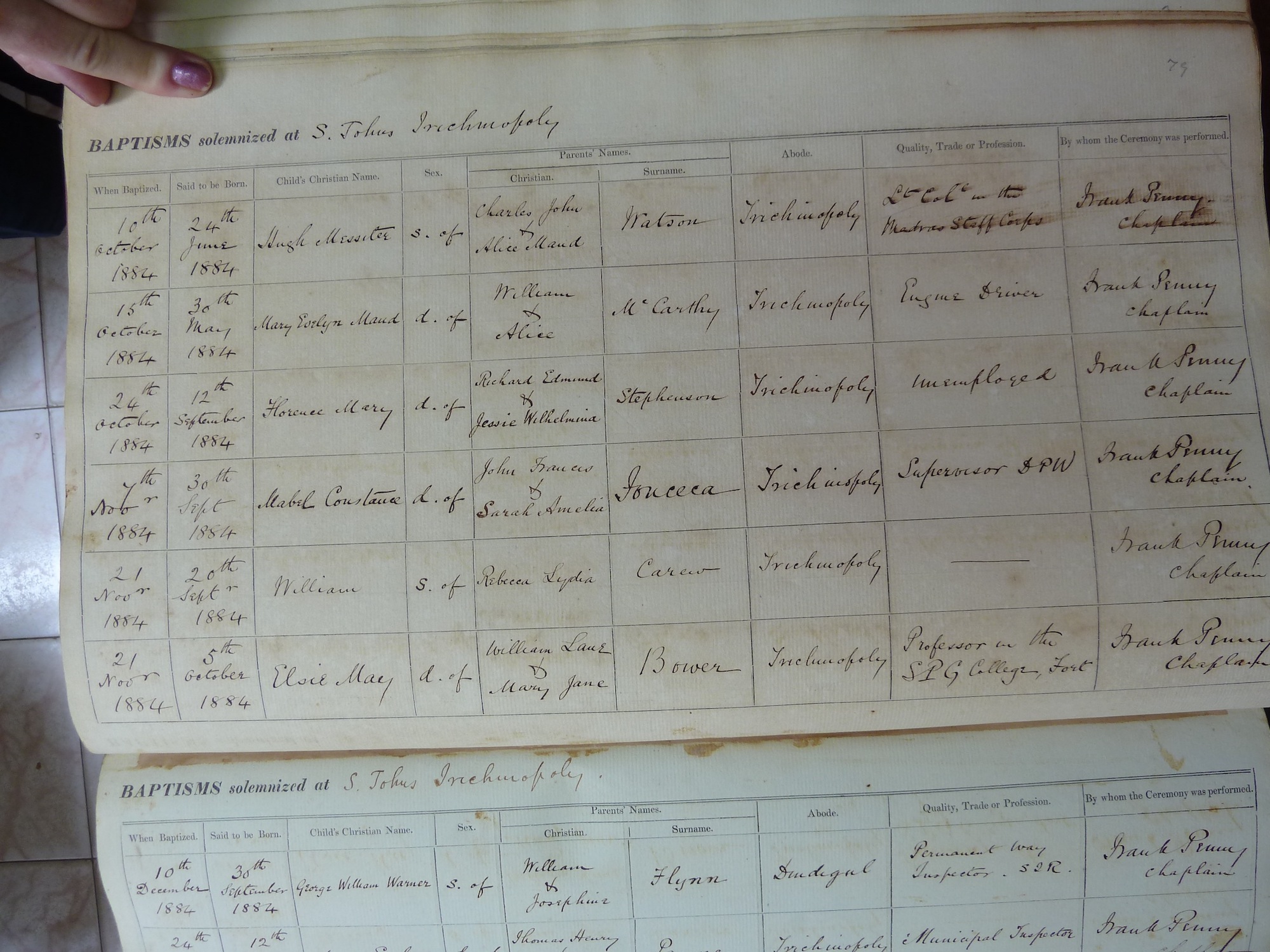 St Johns Church Trichinopoly - Baptismal Registers