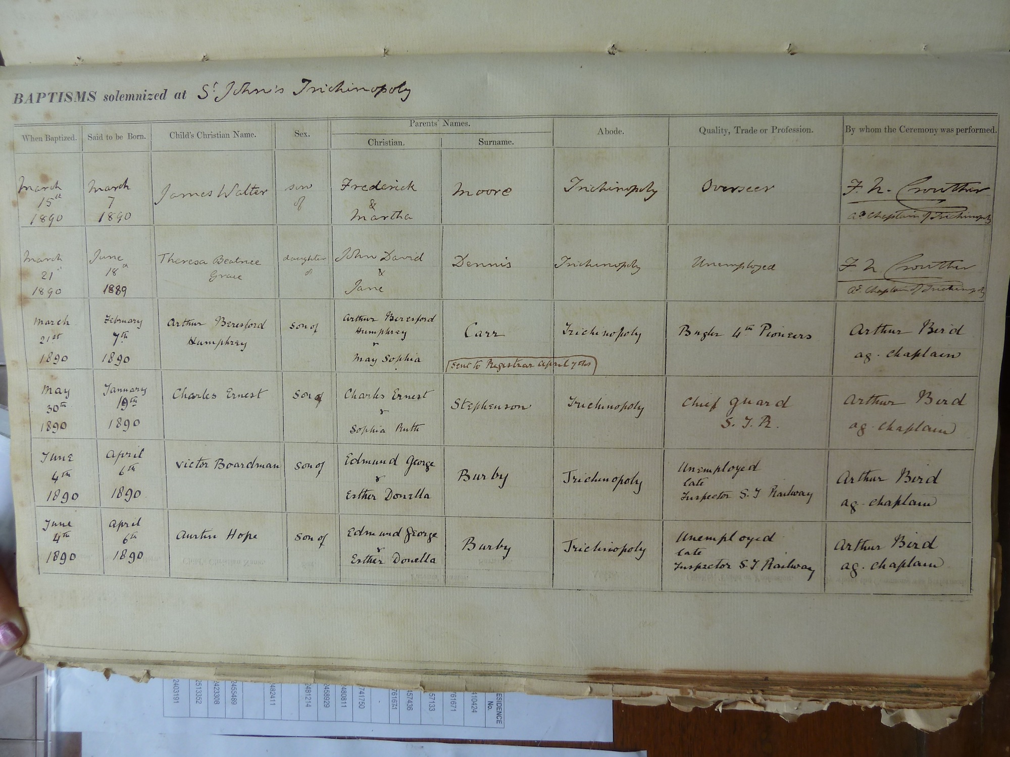 Image title: St Johns Trichinopoly Baptismal Register 1851-1909 - 213 File size: 660,746 bytes