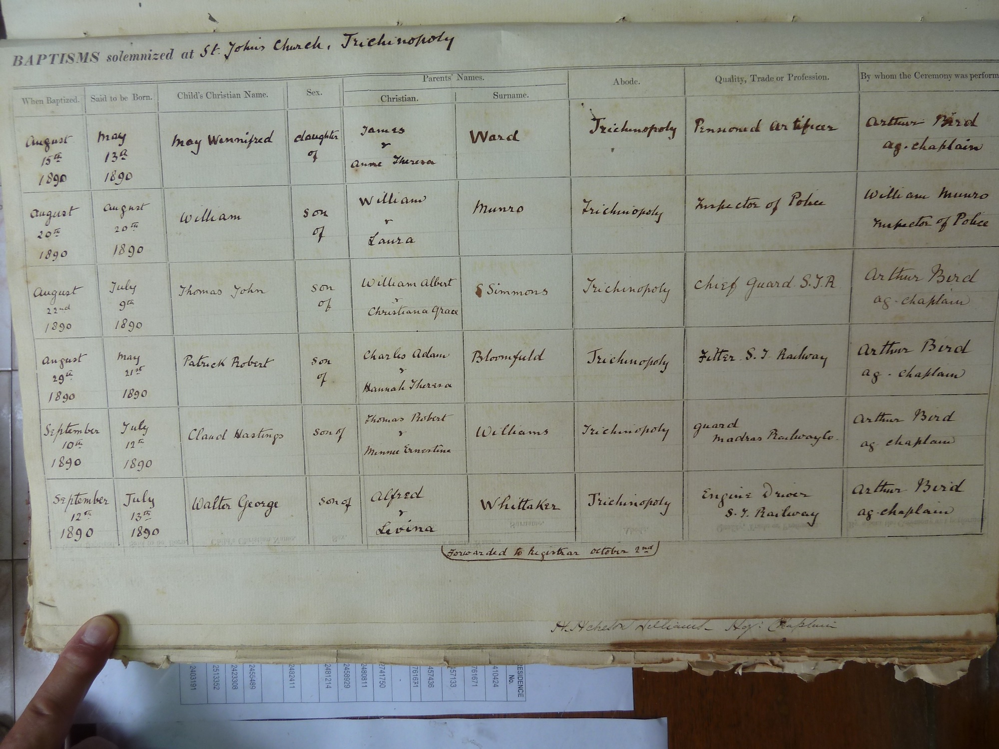 St Johns Church Trichinopoly - Baptismal Registers
