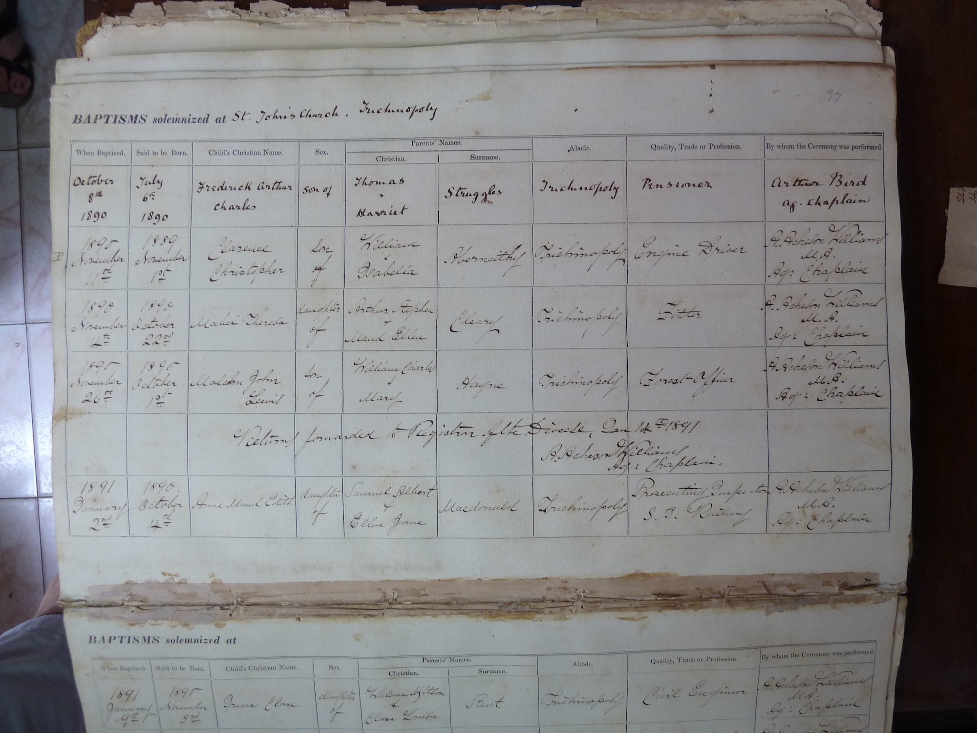 St Johns Church Trichinopoly - Baptismal Registers
