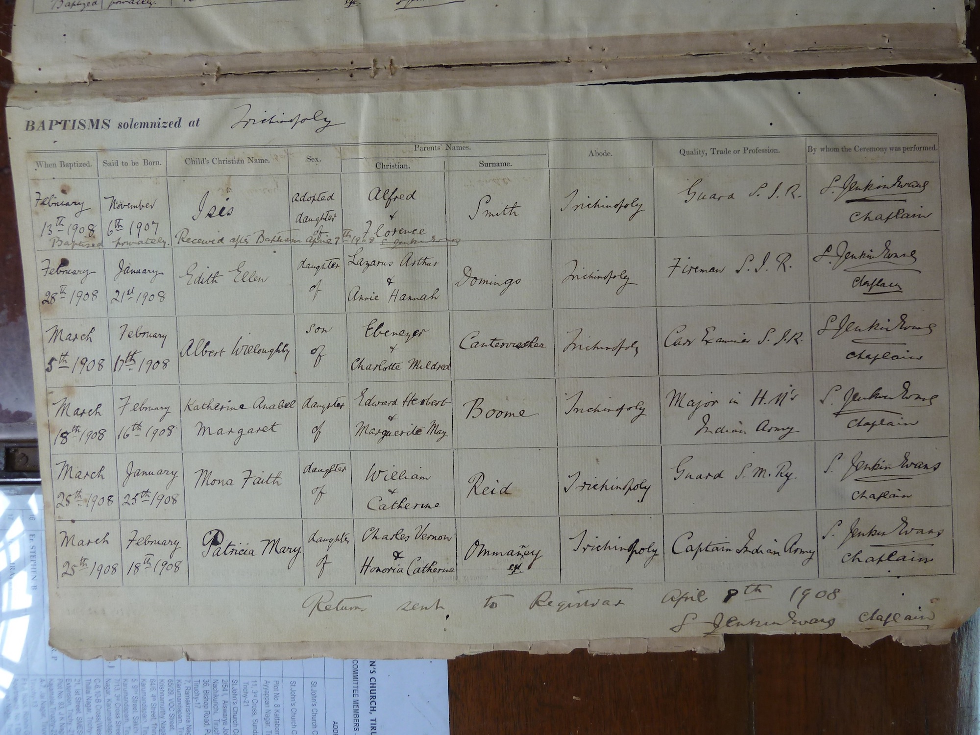 St Johns Church Trichinopoly - Baptismal Registers