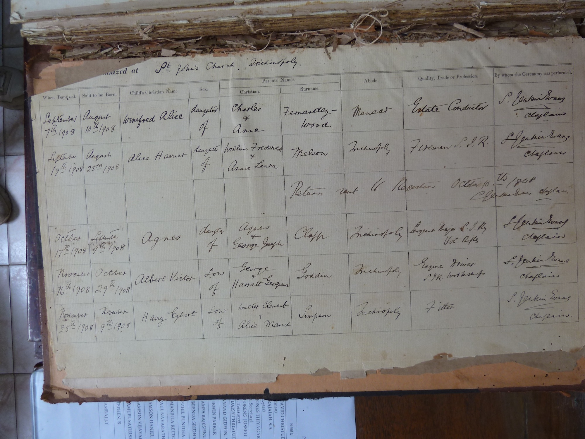 St Johns Church Trichinopoly - Baptismal Registers