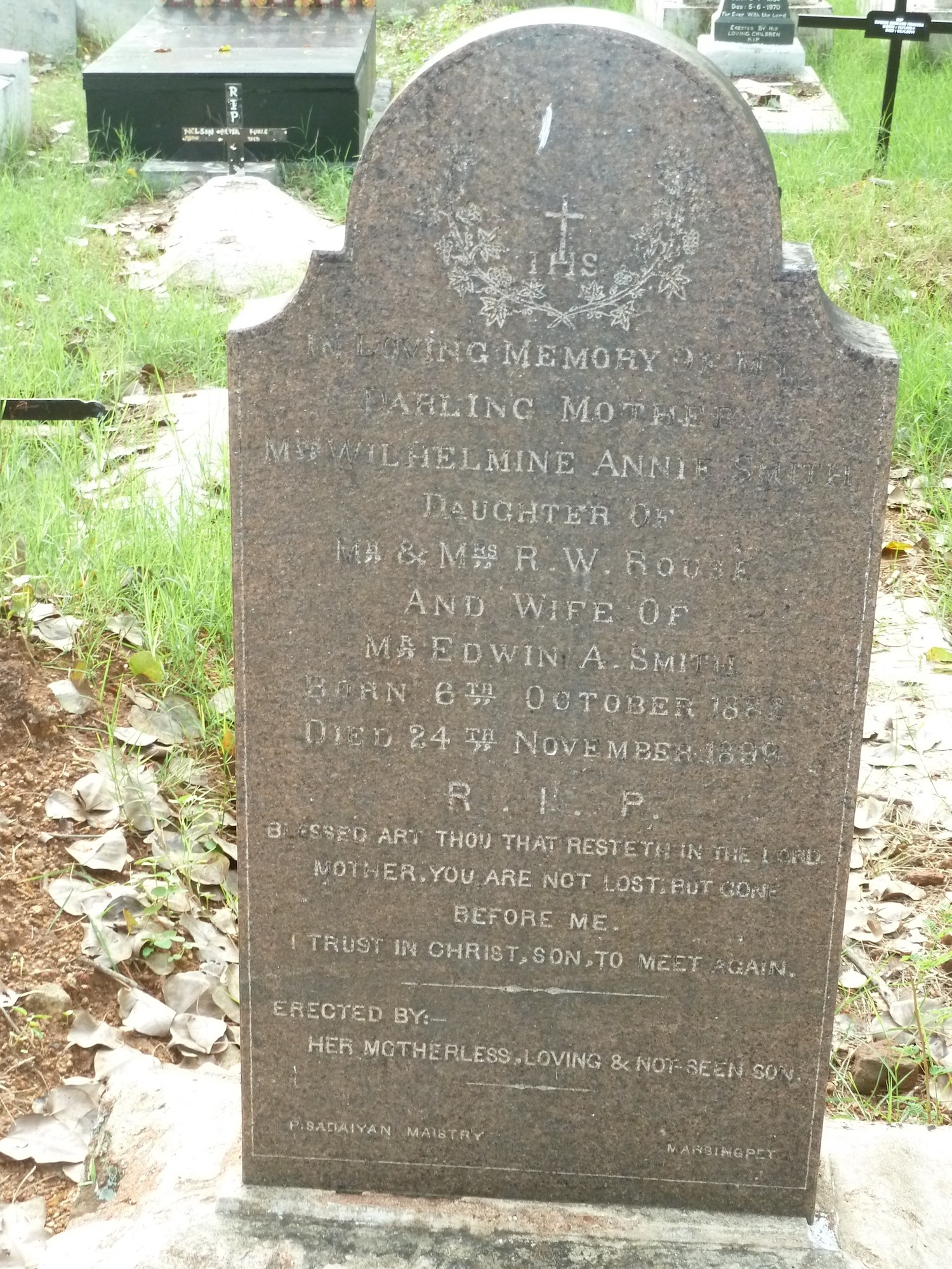 Image title: Smith, Wilhelmine Annie - Graves at Trichinopoly Cemetery, Madras File size: 1,031,160 bytes