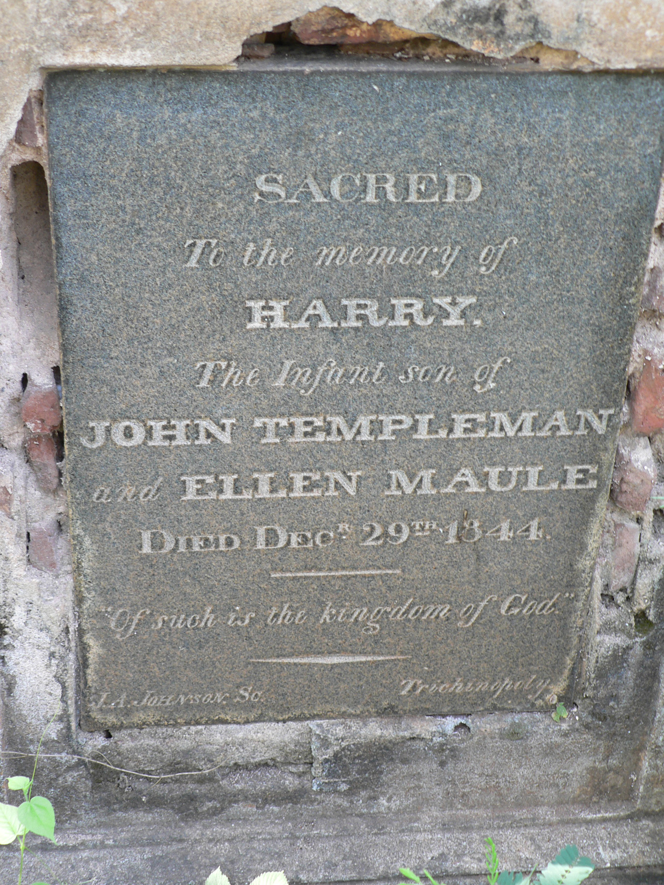 Image title: Templeman, Harry. Grave at St Johns Cemetery Trichy File size: 1,053,076 bytes