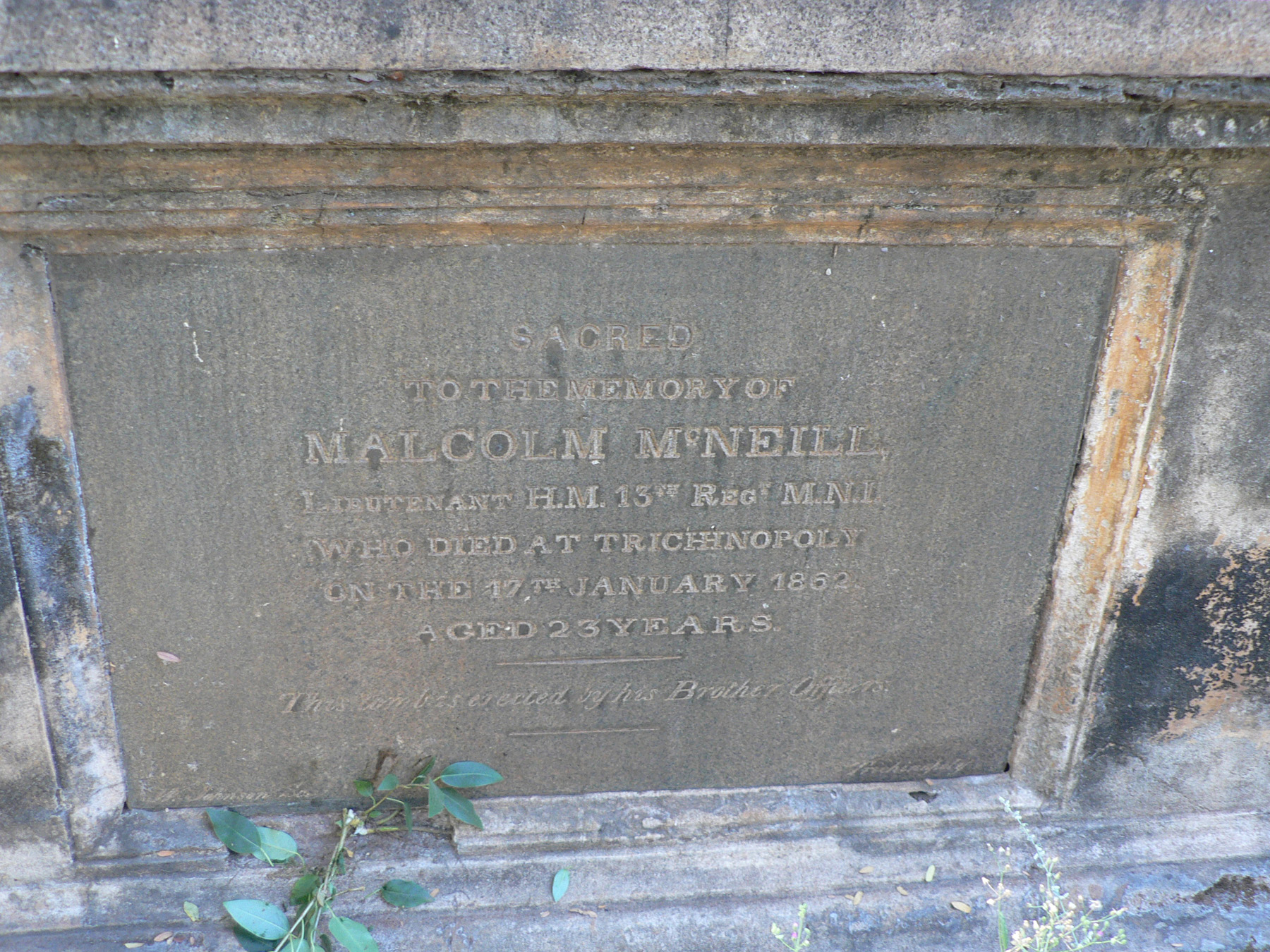 Image title: McNeill, Malcolm. Grave at St Johns Cemetery Trichy File size: 985,293 bytes