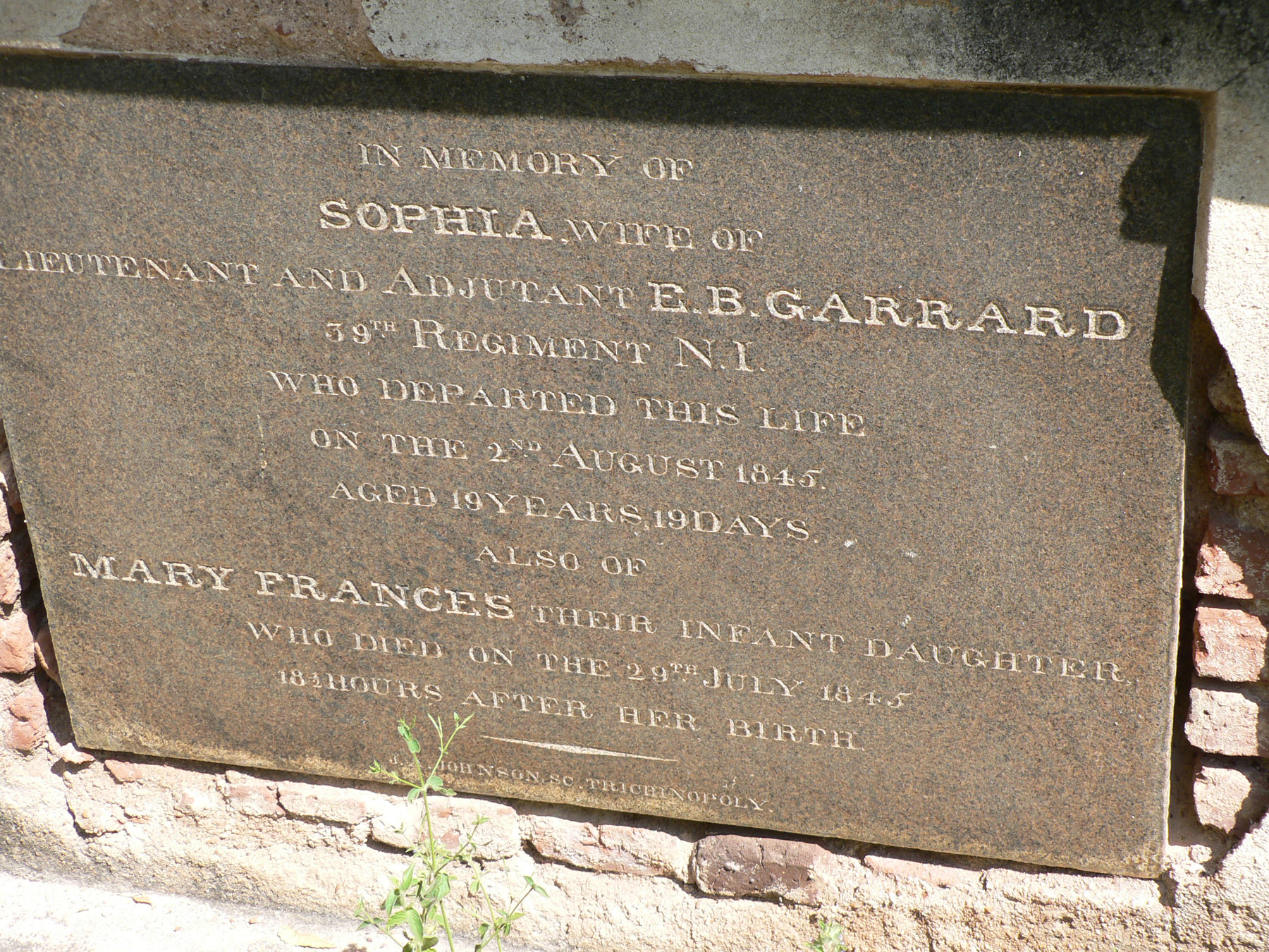 Image title: Garrard, Sophia & Mary F. Grave at St Johns Cemetery Trichy File size: 1,305,796 bytes