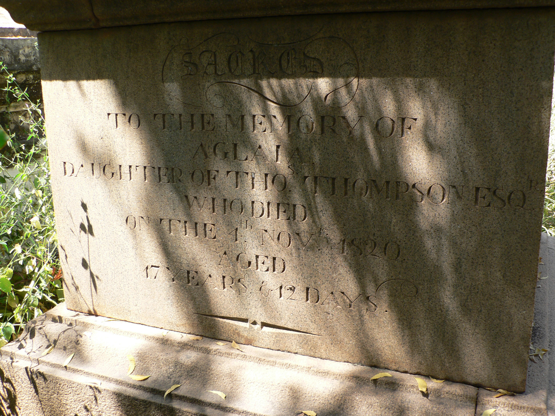 Image title: Thompson, Aglaia. Grave at St Johns Cemetery Trichy File size: 1,084,728 bytes