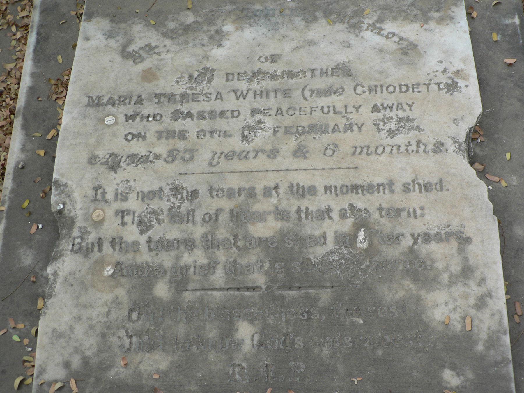 Image title: White, Maria Teresa, gravestone at Gaya File size: 757,300 bytes