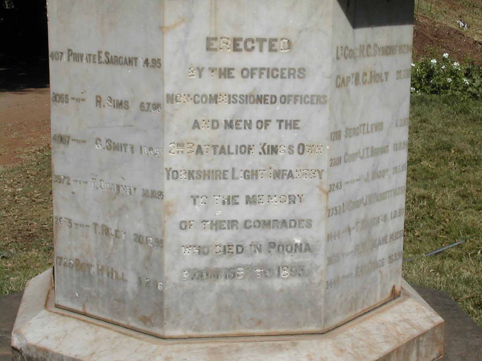 Image title: Memorial to 2nd Battn, K.O. Yorkshire Light Infantry, at Pune File size: 119,331 bytes
