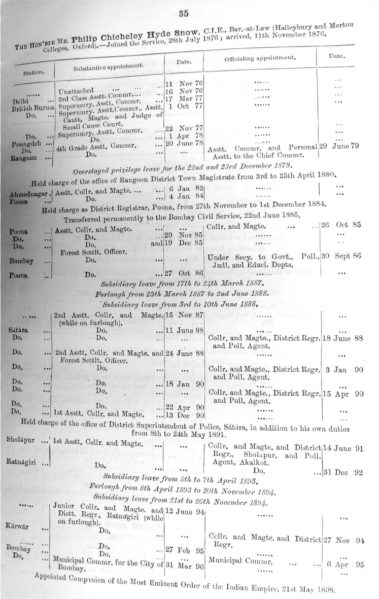 Image title: Bombay Gazetted Civil Servants 1899 Page - 0035.JPG