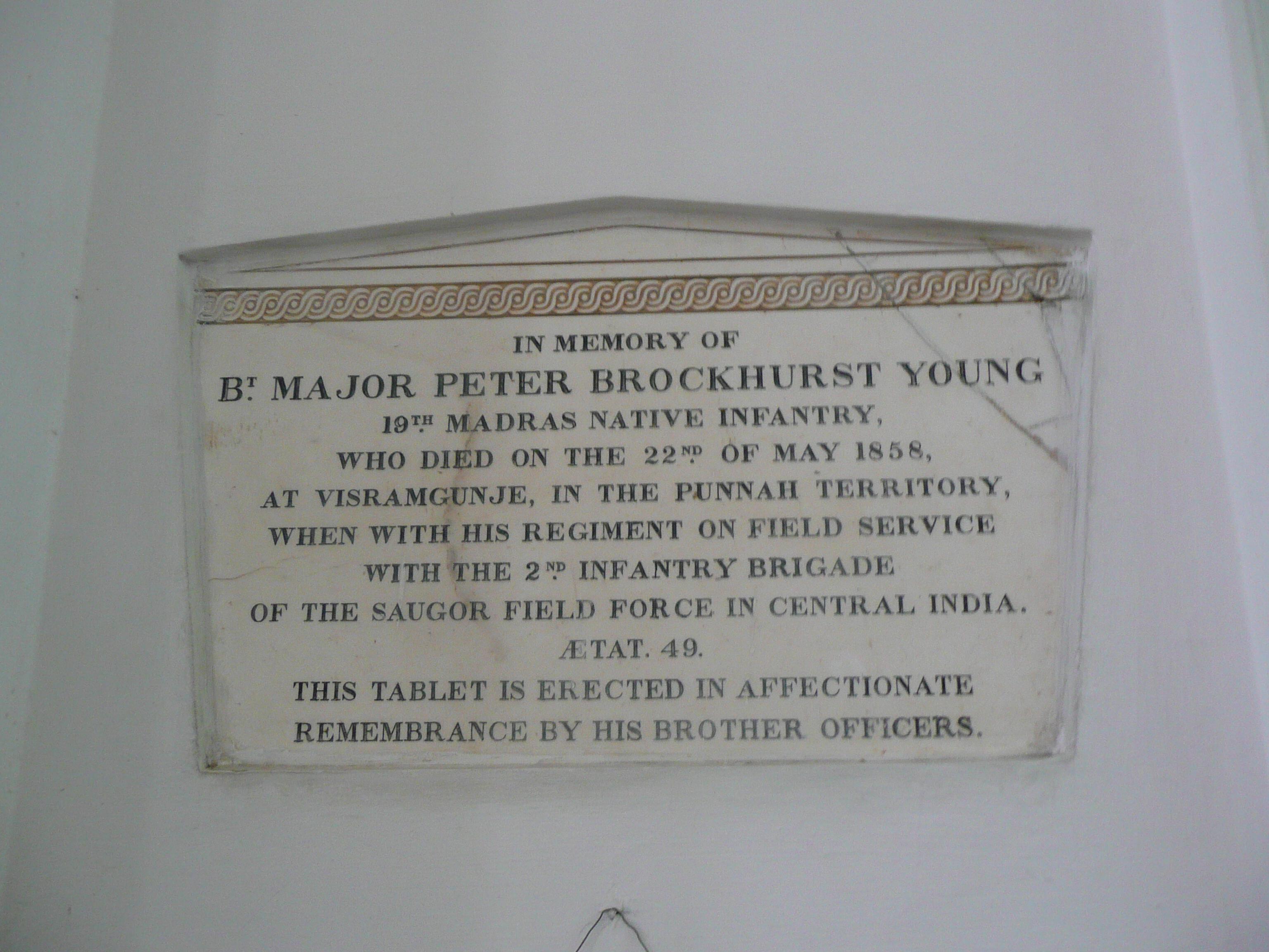 Bt Major Peter Brockhurst Young, Memorial St Marks Cathedral Bangalore