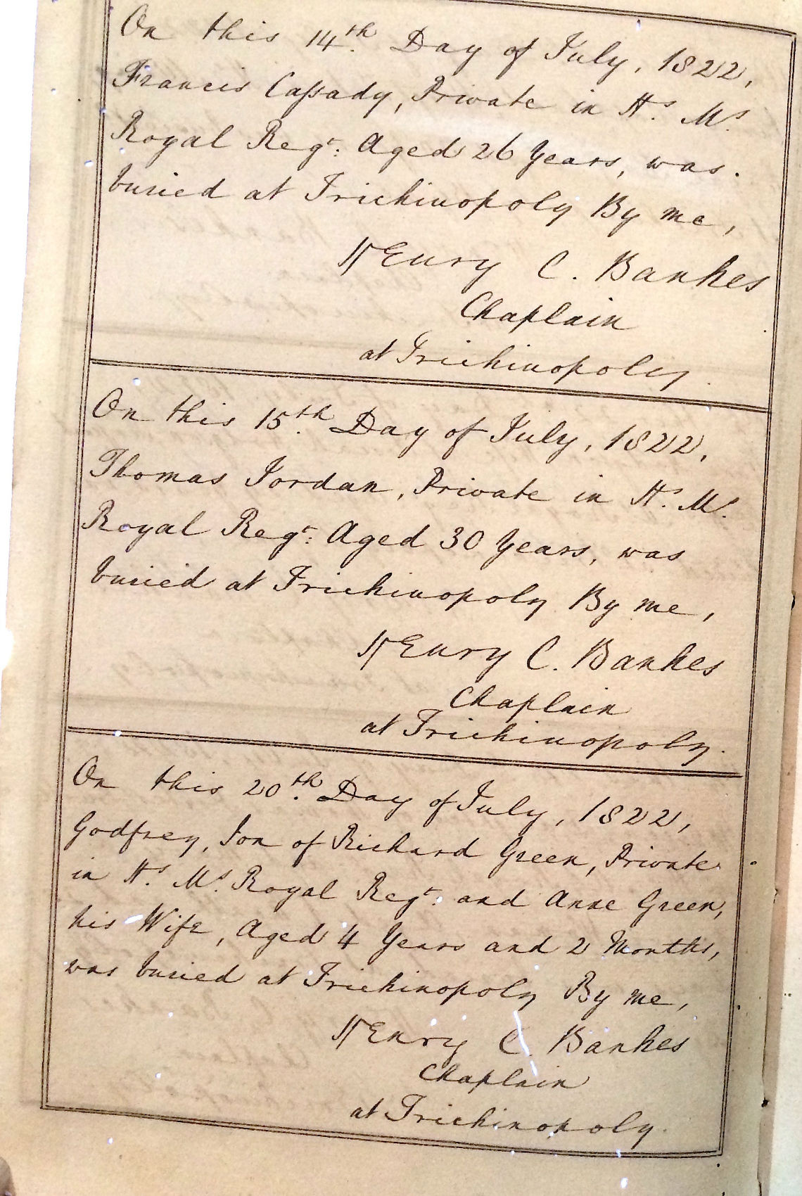 St Johns Church Trichinopoly - Burial Registers